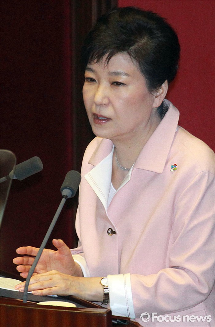 (서울=포커스뉴스) 박근혜 대통령이 13일 오전 서울 여의도 국회에서 열린 20대 국회 개원식에 참석해 연설을 하고 있다.