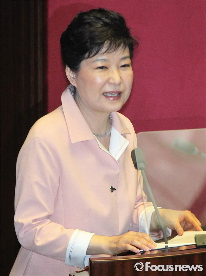 (서울=포커스뉴스) 박근혜 대통령이 13일 오전 서울 여의도 국회에서 열린 20대 국회 개원식에 참석해 연설을 하고 있다.