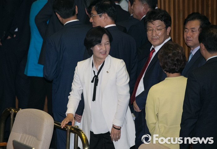 (서울=포커스뉴스) 13일 오후 서울 여의도 국회에서 상임위원장 선출을 위해 열린 343회 국회(임시회) 2차 본회의에 참석한 추미애 더불어민주당 의원이 동료 의원들과 대화하고 있다.