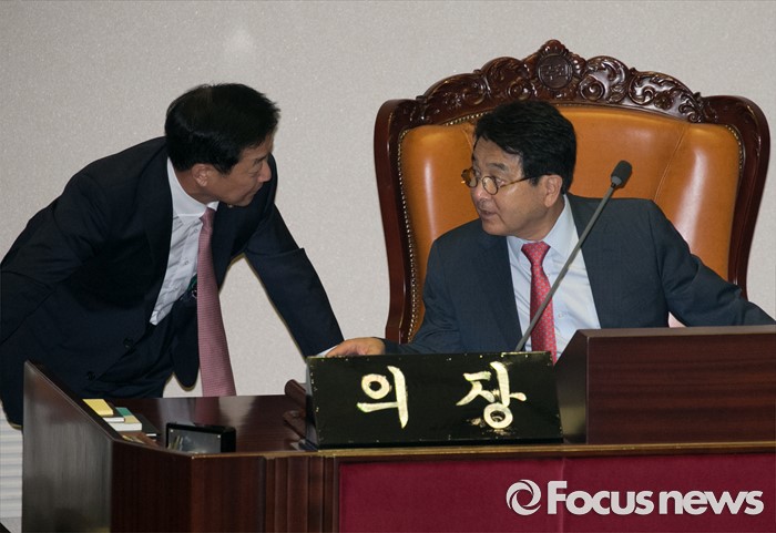 (서울=포커스뉴스) 13일 오후 서울 여의도 국회에서 상임위원장 선출을 위해 열린 343회 국회(임시회) 2차 본회의에 참석한 심재철 국회 부의장이 의장석에 올라 설명을 듣고 있다.