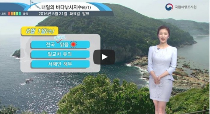 이 관계자는 이어 “해양레저 산업을 활성화하고 더 나아가 연근해 및 원양 선박의 안전항해에도 기여할 것”이라고 덧붙였다.인터넷 해양방송 서비스(www.khoa.go.kr/Onbada) <출처=국립해양조사원>해황예보도 <출처=국립해양조사원>