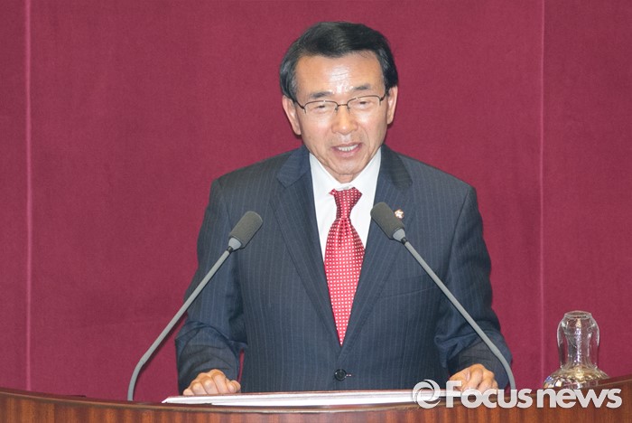 (서울=포커스뉴스) 13일 오후 서울 여의도 국회에서 열린 343회 국회(임시회) 2차 본회의에 참석한 심재권 신임 외교통일위원장이 당선 인사를 하고 있다.