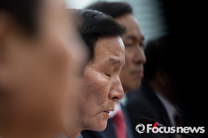 (서울=포커스뉴스) 정기섭 개성공단기업협회 회장이 14일 오전 서울 여의도 국회를 방문해 우상호 더불어민주당 원내대표와 면담에 앞서 발언 하고 있다.