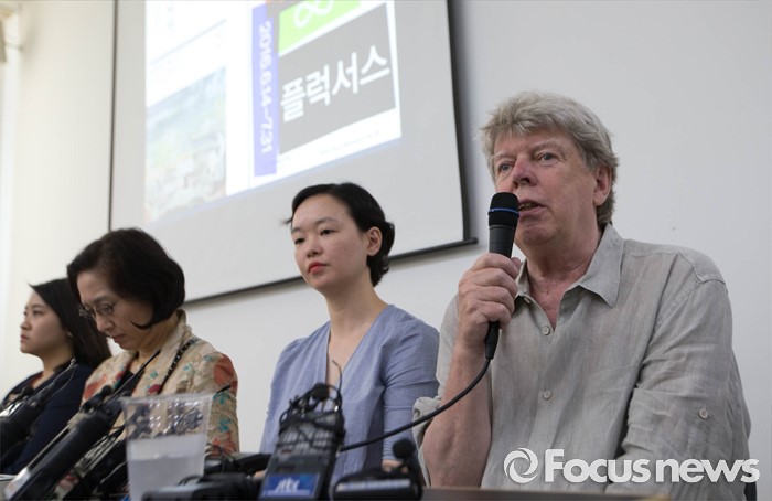 (서울=포커스뉴스) 예술가 모음 '플럭서스' 초기 멤버인 에릭 앤더슨 작가가 14일 오후 서울 중구 서울시립미술관에서 열린 백남준 10주기 추모전-천경자 1주기 추모전 기자간담회에 참석, 예술가 백남준을 회고하고 있다. '백남준∞플럭서스' 추모전은 내달 31일(일)까지 열리며 '천경자 1주기 추모전 '바람은 불어도 좋다. 어짜피 부는 바람이다' 는 8월 7일까지 열리게 된다.