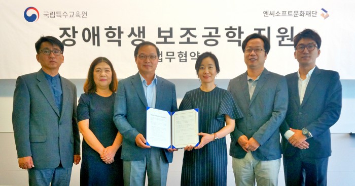 엔씨소프트문화재단(이사장 윤송이)과 국립특수교육원(원장 우이구)은 14일 엔씨소프트 판교 연구개발센터에서 장애학생 보조공학 지원을 위한 업무협약을 체결했다.