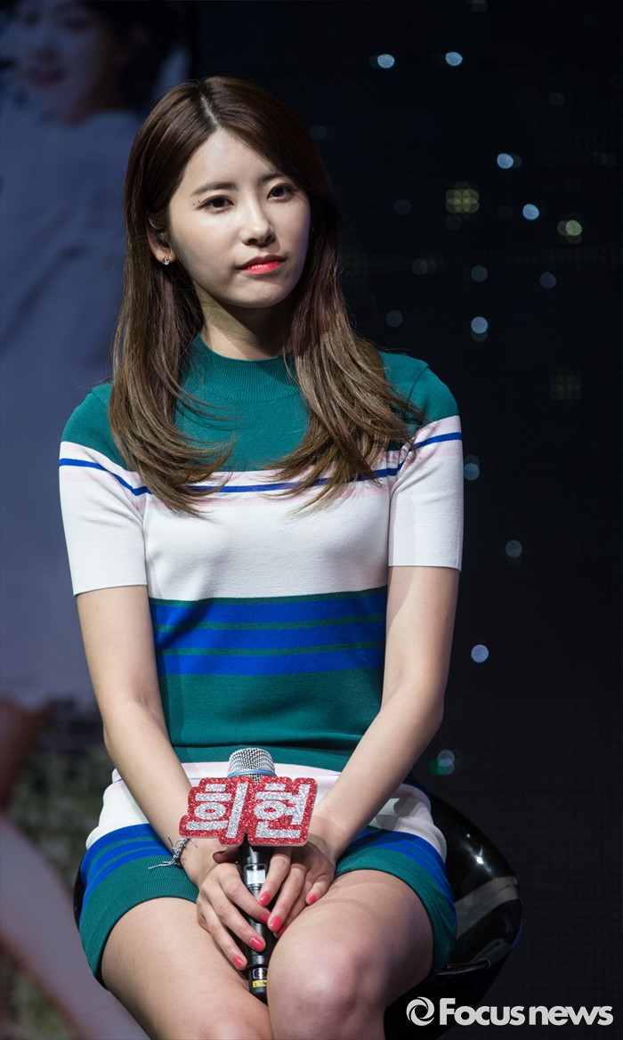 (서울=포커스뉴스) 14일 오후 서울 마포구 롯데카드 아트센터에서 열린 걸그룹 다이아의 두번째 앨범 'HAPPY ENDING' 발표 쇼케이스에 참여한 멤버 희현이 취재진에게 질문을 받고 있다.