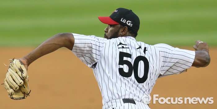 (서울=포커스뉴스) 14일 서울 잠실구장에서 열린 2016 프로야구 NC-LG 경기에서 1회초 LG 선발투수 소사가 투구하고 있다.