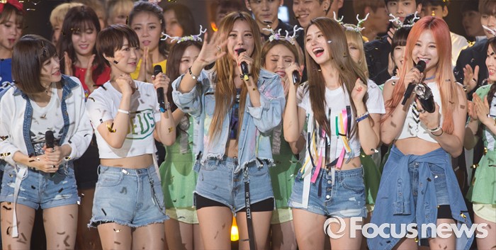 (서울=포커스뉴스) 14일 오후 서울 마포구 SBS프리즘 타워에서 열린 SBS MTV '더쇼' 생방송 현장에 참여한 걸그룹 EXID의 멤버들이 더쇼 초이스에 선정된 후 기뻐하고 있다.