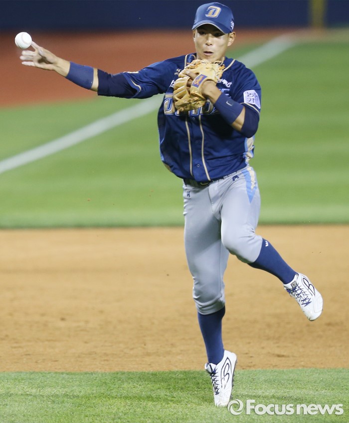 (서울=포커스뉴스) 14일 서울 잠실구장에서 열린 2016 프로야구 NC-LG 경기 9회말 무사 2,3루에서 LG 손주인의 3루 땅볼을 NC 3루수 황윤호가 잡아 홈으로 던져 3루주자의 득점을 막고 있다.