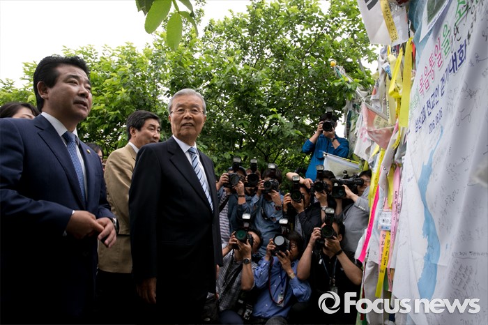 (파주=포커스뉴스) 15일 오전 경기도 파주 임진각 통일전망대에서 더불어민주당 비상대책위원회의를 마친 김종인 비대위 대표와 의원들이 자유의 다리를 찾아 둘러보고 있다.