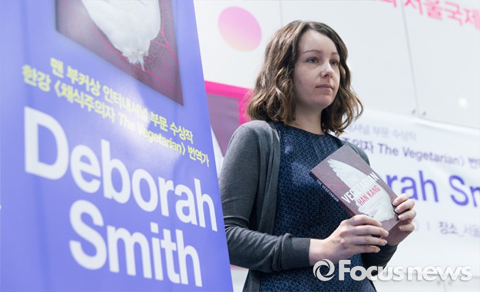 (서울=포커스뉴스) 15일 오후 서울 강남구 코엑스에서 열린 2016 서울국제도서전에서 '채식주의자'의 번역가인 데보라 스미스가 기자회견에 앞서 포즈를 취하고 있다.