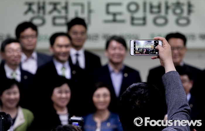 (서울=포커스뉴스) 15일 오후 서울 여의도 국회 의원회관에서 열린 '소비자 집단소송과 징벌적 손해배상제도 쟁점과 방향' 토론회에 참석한 안철수 국민의당 상임공동대표, 천정배 공동대표, 박지원 원내대표 등 의원 및 참석자들이 기념촬영을 하고 있다.
