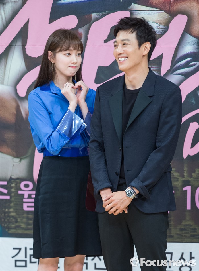(서울=포커스뉴스) 15일 오후 서울 양천구 SBS목동사옥에서 열린 SBS 월화드라마 '닥터스' 제작발표회에 참석한 배우 이성경(왼쪽)과 김래원이 포토타임을 갖고 있다.