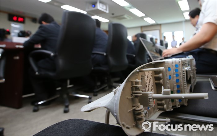 (세종=포커스뉴스) 김영석 해양수산부 장관 주재로 16일 오전 세종시 정부세종청사 해수부 중회의실에서 열린 세월호 공정 점검회의가 열린 가운데 세월호 모형이 놓여져 있다.