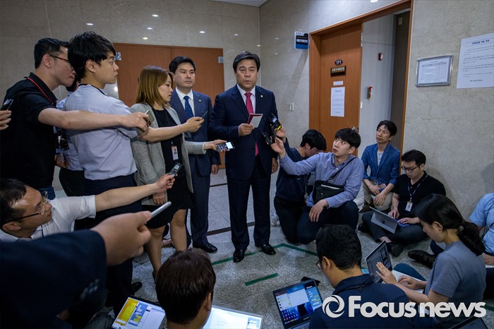 (서울=포커스뉴스) 김선동 새누리당 혁신비대위 비서실장이 16일 오후 서울 여의도 국회에서 김희옥 혁신비상대책위원장의 거취 관련 에 대해 입장 발표 하고 있다.