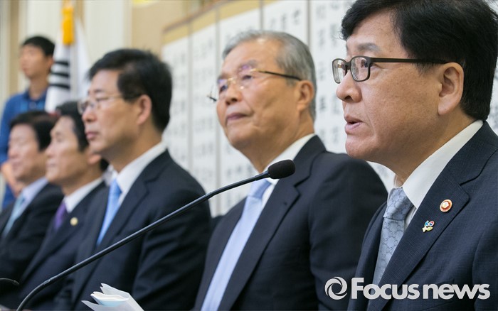 (서울=포커스뉴스) 17일 오전 서울 여의도 국회 귀빈식당에서 열린 국회 저출산극복 연구포럼 1차 회의에 참석한 정진엽(오른쪽 첫번째) 보건복지부 장관이 인사말을 하고 있다.