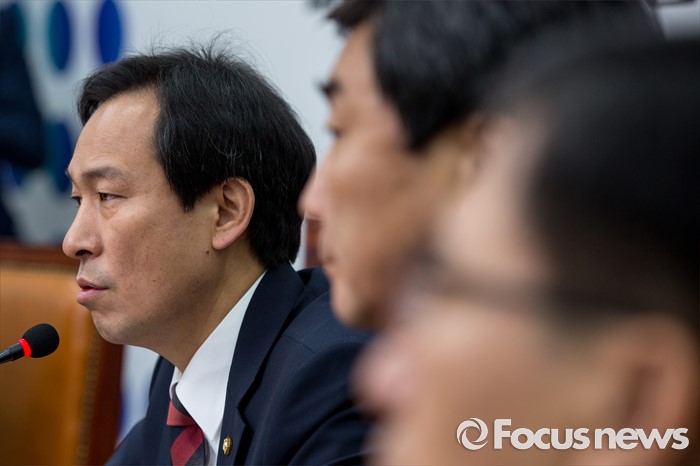 (서울=포커스뉴스) 우상호 더불어민주당 원내대표가 17일 오전 서울 여의도 국회에서 열린 비상대책위원회의에 참석해 모두발언 하고 있다.