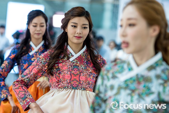 (서울=포커스뉴스) 17일 오후 서울 여의도 국회의원회관에서 열린 '2016 대한민국 국회 초청패션쇼-품'에서 모델들이 개량한복을 입고 멋진 워킹을 선보이고 있다.