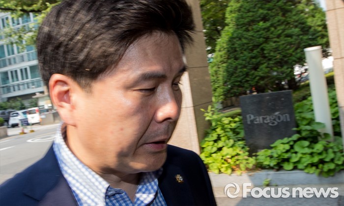 (서울=포커스뉴스) 지상욱 새누리당 대변인이 17일 오후 서울 논현동의 김희옥 새누리당 혁신비상대책위원장 자택으로 향하며 취재진의 질문에 답하고 있다.