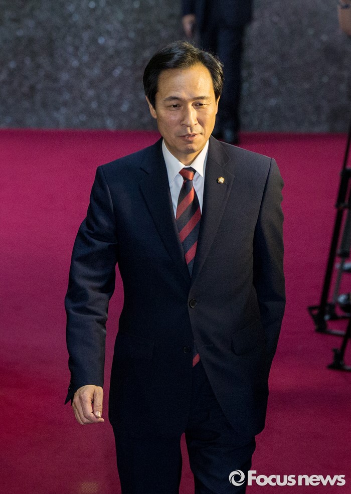 (서울=포커스뉴스) 우상호 더불어민주당 원내대표가 17일 오후 서울 여의도 국회에서 정세균 국회의장을 비롯한 여야 원내대표들과 회동을 하기 위해 국회의장실로 들어서고 있다.