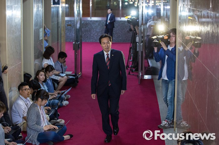 (서울=포커스뉴스) 우상호 더불어민주당 원내대표가 17일 오후 서울 여의도 국회에서 정세균 국회의장을 비롯한 여야 원내대표들과 회동을 하기 위해 국회의장실로 들어서고 있다.