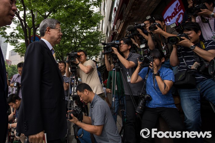 (서울=포커스뉴스) 김희옥 새누리당 혁신비상대책위원장이 정진석 원내대표와 회동을 하기 위해 19일 오전 서울 강남구 논현동 한 커피숍으로 들어서고 있다.