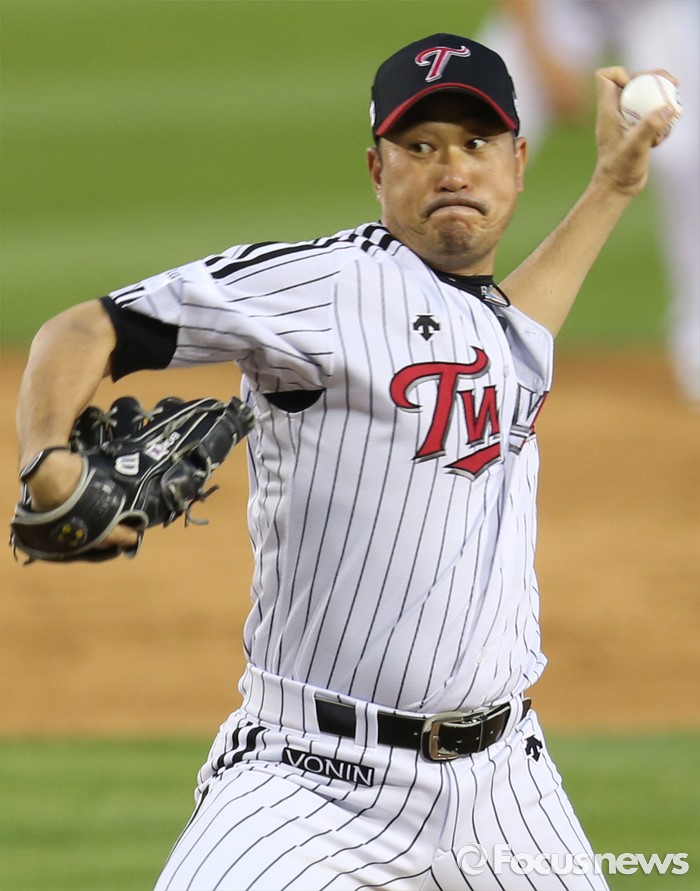 (서울=포커스뉴스) 19일 서울 잠실구장에서 열린 2016 프로야구 KIA-LG 경기에서 LG 투수 봉중근이 8회 등판해 투구하고 있다.