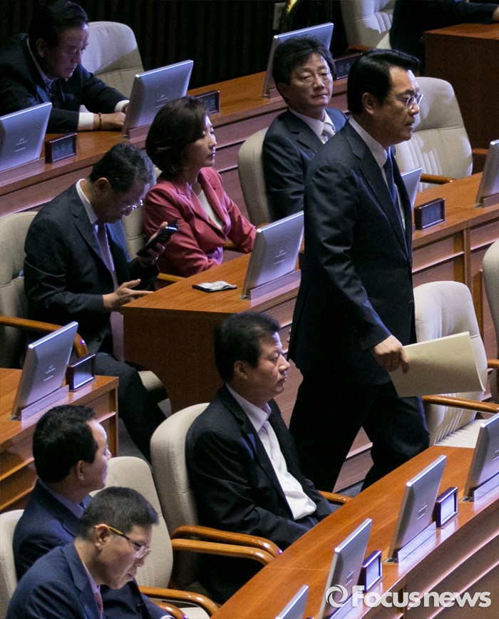 (서울=포커스뉴스) 20일 오전 서울 여의도 국회에서 열린 343회 국회(임시회) 3차 본회의에 참석한 정진석 새누리당 원내대표가 교섭단체 대표연설을 위해 이동하고 있다.