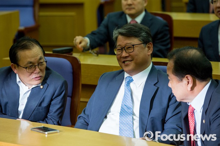 △ 대화 나누는 조원진-이우현-이채익 의원