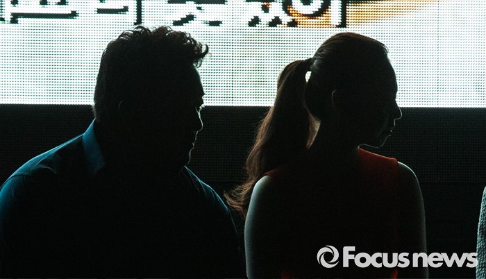 (서울=포커스뉴스) 21일 오전 서울 종로구 나인트리컨벤션에서 열린 영화 '부산행' 제작보고회에 참석한 배우 마동석(왼쪽)과 안소희가 예고편을 보고 있다.