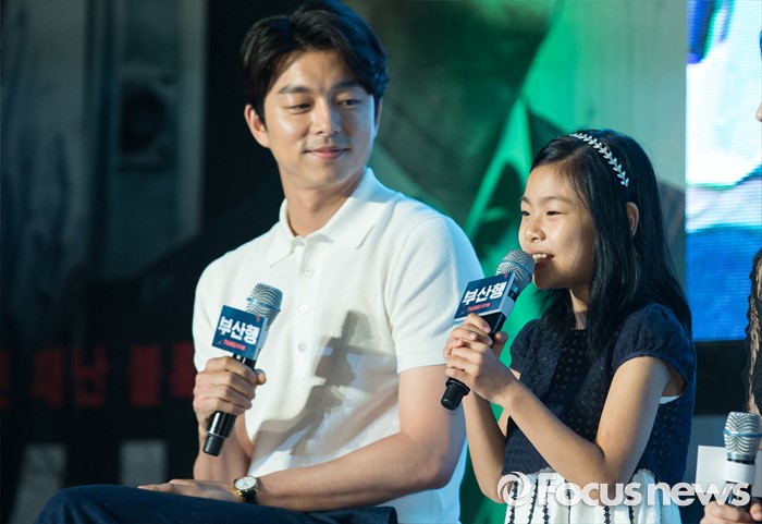 (서울=포커스뉴스) 21일 오전 서울 종로구 나인트리컨벤션에서 열린 영화 '부산행' 제작보고회에 참석한 배우 김수안(오른족)이 인사말을 하고 있다.