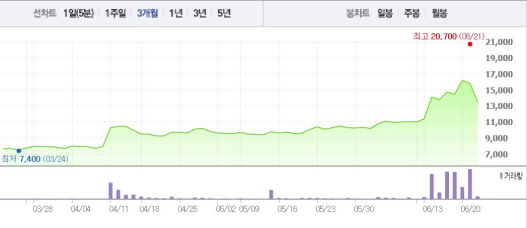 앞서 보광산업은 “최대주주 박병준씨가 채무 불이행시 소유 주식을 담보로 제공하고 최대주주를 변경하는 계약을 체결했다”고 17일 공시했다. 박병준씨의 현재 보유 지분은 9.9%이고 담보권을 전부 실행할 경우 지분율은 5.31%로 낮아진다.주가흐름<사진출처=네이버 캡쳐>