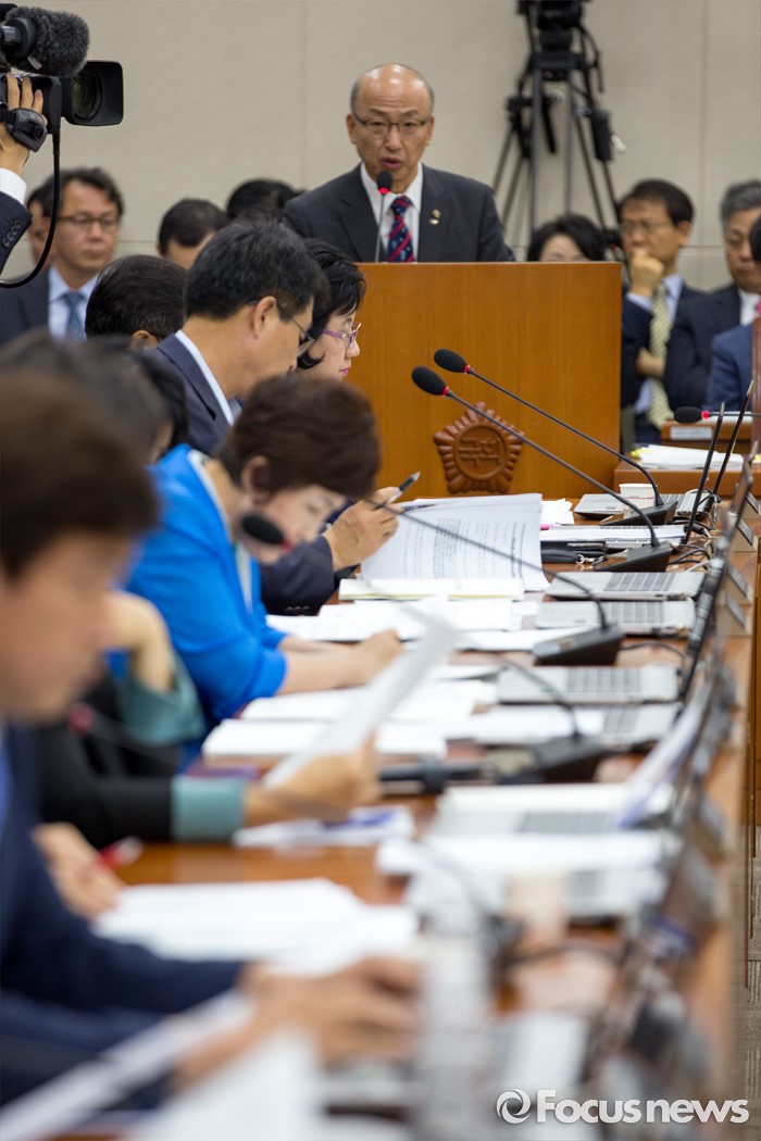 (서울=포커스뉴스) 문형표 국민연금공단 이사장이 22일 오후 서울 여의도 국회에서 열린 '보건복지위원회 전체회의'에 참석해 2015년 메르스 사태 당시 보건복지부 장관을 중간에 사퇴한 이유로 국정감사 출석에 불응한 것과 메르스 사태 미수습에 대해 사과 하고 있다.