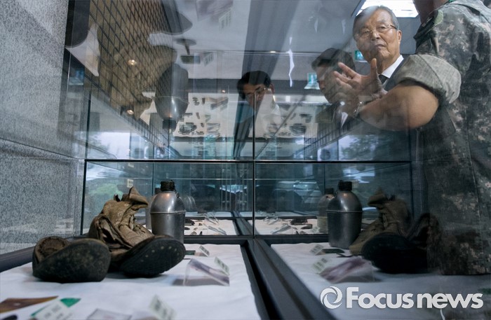 신원확인 전사자 유품 살펴보는 김종인 대표