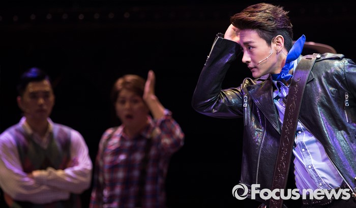 (서울=포커스뉴스) 22일 오후 서울 종로구 홍익대학고 대학로 아트센터에서 열린 뮤지컬 '올슉업' 프레스콜에 참여한 배우 최우혁이 주요장면을 시연하고 있다.