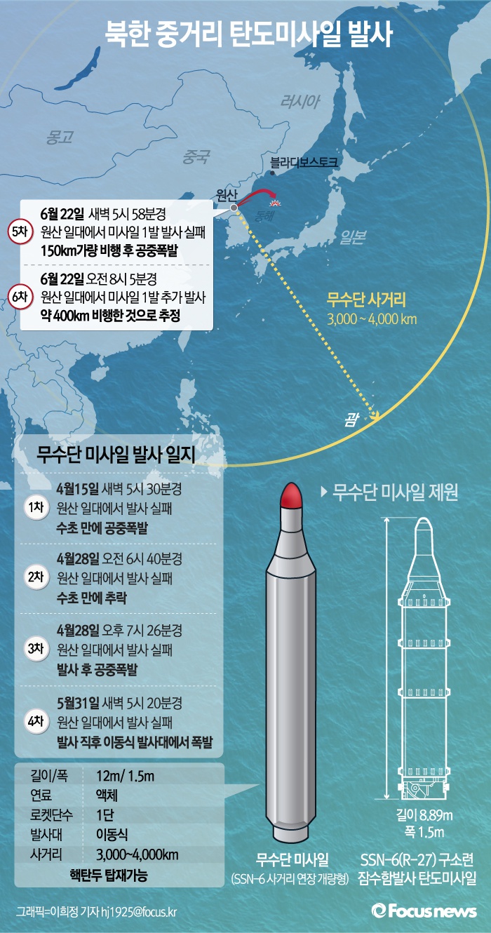 | △ [그래픽] 북한 중거리 탄도미사일 발사(종합) |