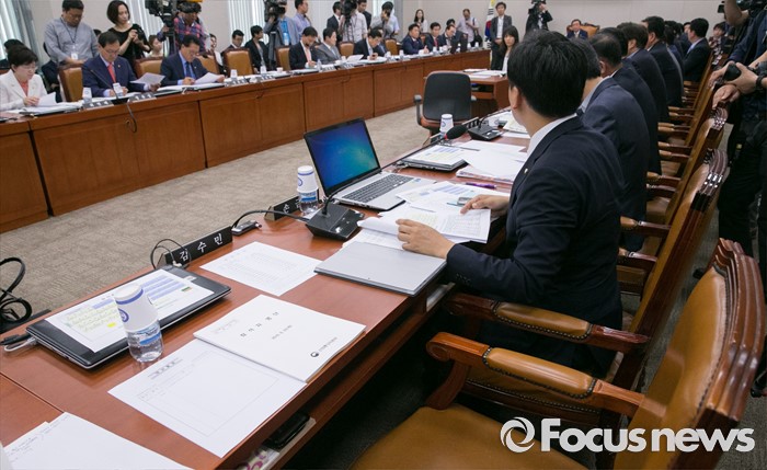 (서울=포커스뉴스) 23일 오전 서울 여의도 국회에서 열린 산업통상자원위원회 전체회의에 불참한 김수민 국민의당 의원의 빈 자리가 보이고 있다. 리베이트 수수 의혹을 받고 있는 김 의원은 이날 검찰에 출석했다.