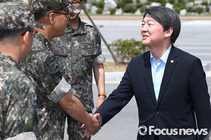 (서울=포커스뉴스) 안철수 국민의당 상임공동대표가 23일 오전 경기도 평택 해군 제2함대 사령부를 방문해 군 관계자들과 인사하고 있다.