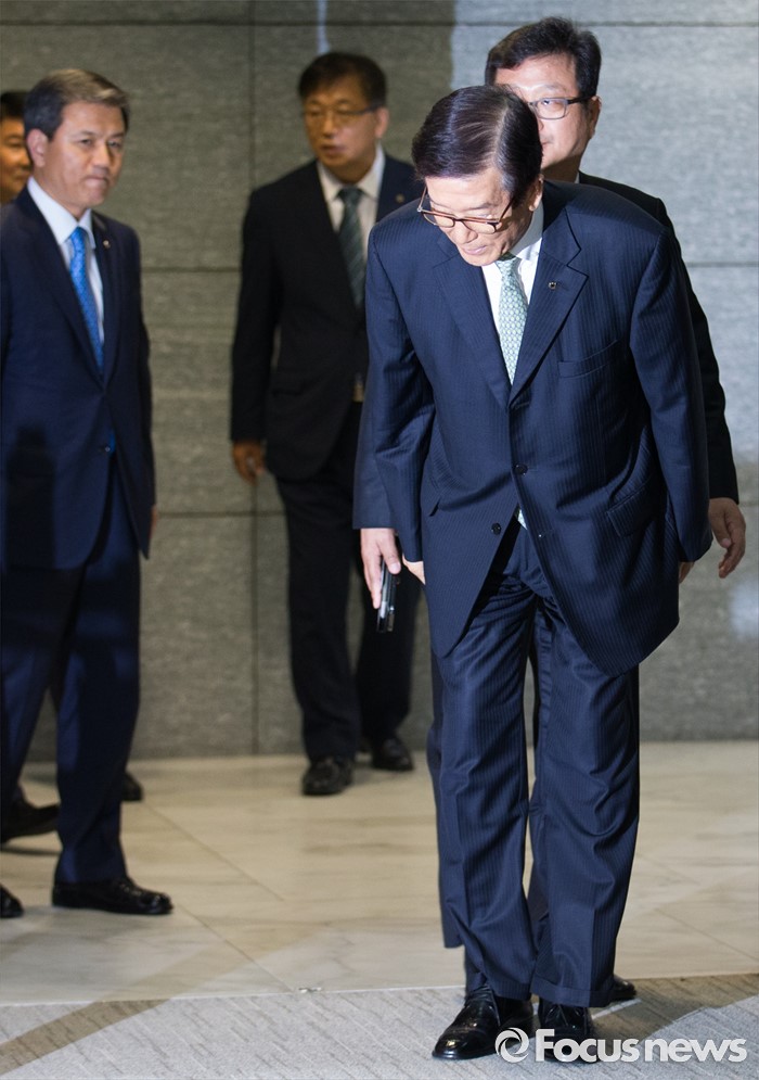 (서울=포커스뉴스) 이동걸(오른쪽) KDB산업은행 회장이23일 오후 서울 영등포구 KDB산업은행 본점에서 열린 산업은행 혁신 추진방안 기자간담회에 참석해 취재진에게 인사하고 있다.