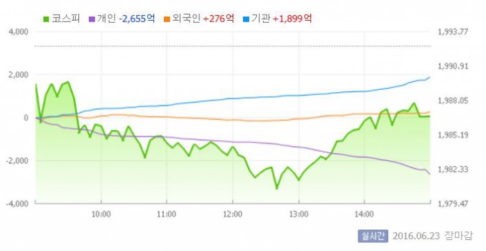 [마감시황] 코스피, 브렉시트 경계감에 1980선 '눈치보기'