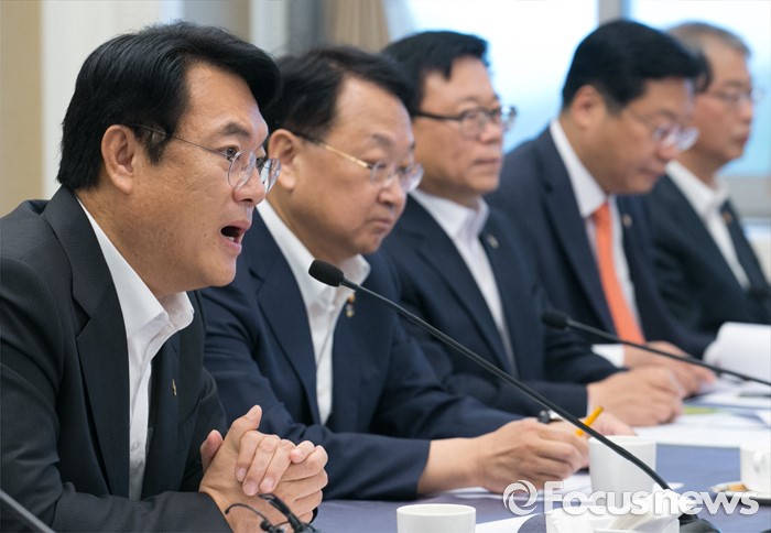 (서울=포커스뉴스) 24일 오전 서울 여의도 국회 귀빈식당에서 열린 2016년 하반기 경제정책방향 당정간담회에 참석한 정진석 새누리당 원내대표가 인사말을 하고 있다.