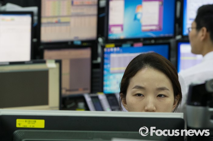 (서울=포커스뉴스) 영국의 유럽연합(EU) 탈퇴를 의미하는 '브렉시트' 국민 투표 개표가 진행되는 24일 오전 서울 중구 KEB 하나은행 명동 본점 딜링룸에서 딜러들이 업무를 보고 있다. 이날 코스피지수는 브리메인 기대에 2000p를 돌파했으나 다시 하락해 1900p대를 유지하고 있다.