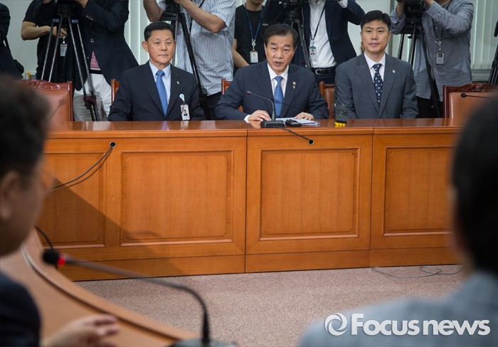 (서울=포커스뉴스) 황인무(가운데) 국방부 차관이 24일 오전 서울 여의도 국회 더불어민주당 당대표 회의실에서 열린 북한 미사일 발사 관련 국방부 현안보고에 참석해 발언하고 있다.