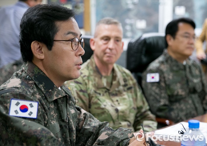 (의정부=포커스뉴스) 새누리당 소속 김영우 국회 국방위원장이 24일 오전 경기도 의정부 미2사단 한미연합사단을 방문해 부대 현황보고에 앞서 인사말을 하고 있다.