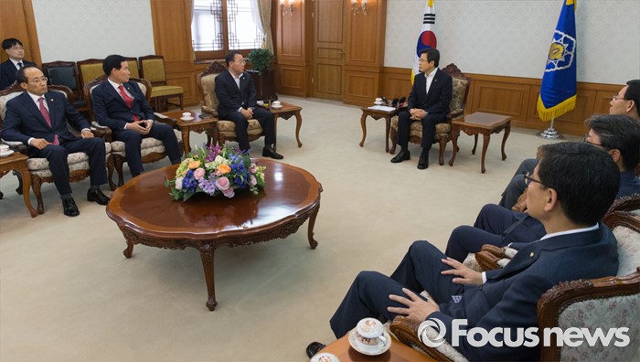 (서울=포커스뉴스) 황교안 국무총리와 대구지역 국회의원들이 24일 오후 서울 종로구 정부서울청사에서 영남권 신공항 백지화 관련 면담하고 있다.