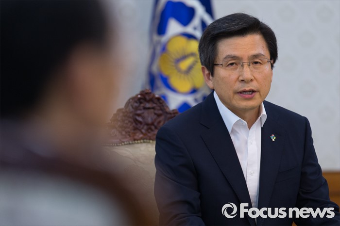 (서울=포커스뉴스) 황교안 국무총리와 대구지역 국회의원들이 24일 오후 서울 종로구 정부서울청사에서 영남권 신공항 백지화 관련 면담하고 있다.