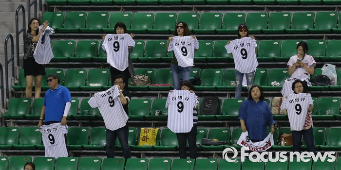 (서울=포커스뉴스) 24일 서울 잠실구장에서 열린 2016 프로야구 넥센-LG 경기에서 LG 이병규의 팬들이 외야 관중석에서 유니폼을 펼쳐 들고 응원하고 있다.