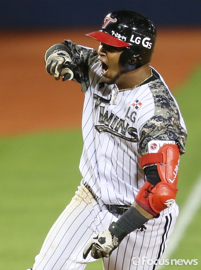 △ 역점 홈런치고 환호하는 LG 히메네스