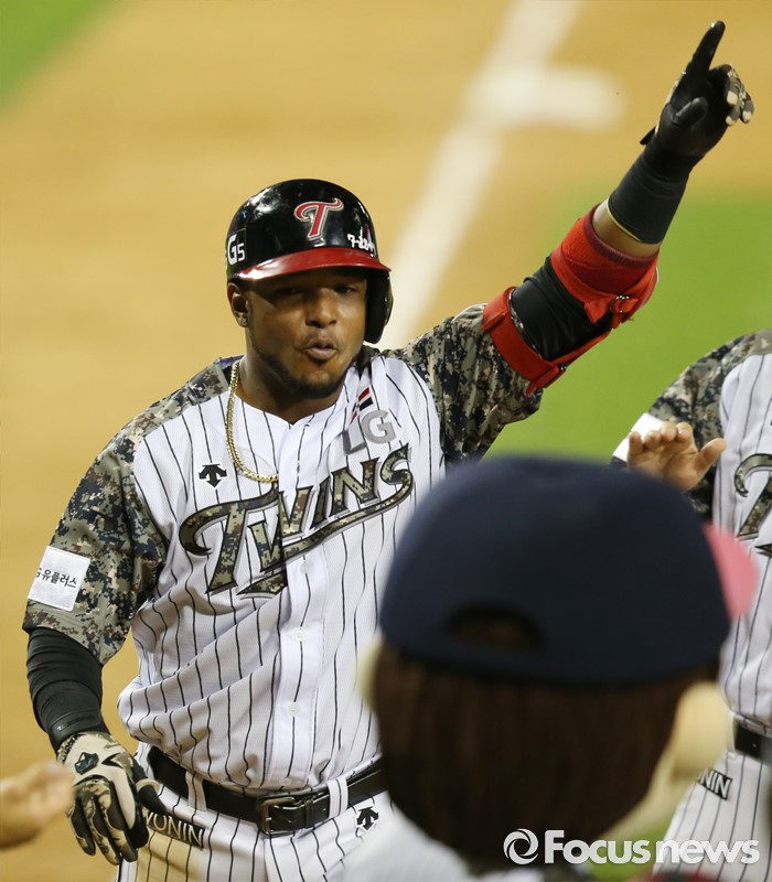 | △ 역점 홈런치고 환호하는 LG 히메네스 |