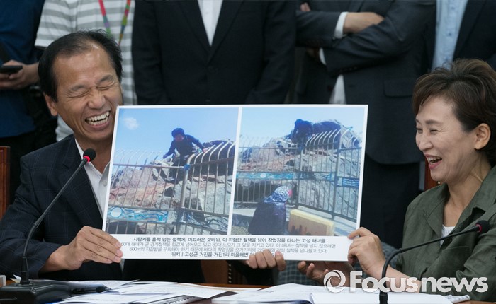 (서울=포커스뉴스) 26일 오전 서울 여의도 국회에서 열린 더불어민주당 시도지사 정책협의회에 참석한 최문순 강원도지사가 지역 현안과 관련 발언하고 있다. 오른쪽은 김현미 예산결산특별위원장.